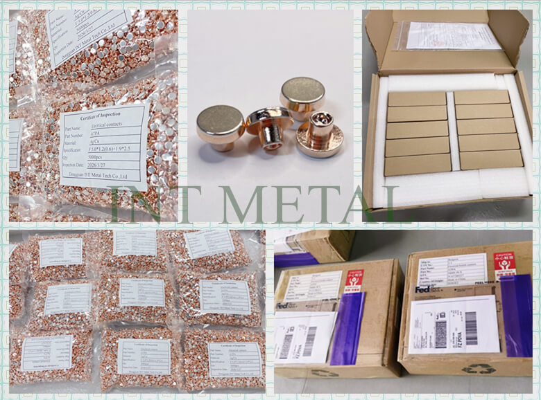 DOGGUAN INT METAL TECH CO LTDmengamalkan proses komposit menekan sejuk (tajuk sejuk), yang menggabungkan aloi perak atau perak dengan tembaga dalam keadaan pepejal melalui tekanan yang luar biasa. Proses ini memastikan ketebalan seragam lapisan perak dan kekuatan ikatan yang sangat tinggi, yang kenalan perakdihasilkan olehINT LOGAMboleh menjamin kebolehpercayaan seumur hidup produk pelanggan.